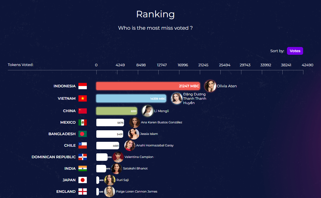 “Miss Charm is bringing the latest technological developments to the world of beauty pageants, ensuring a safe and transparent experience for everybody”, according to Cointelegraph. In total over 70,000 votes were processed on BSC blockchain, with the majority of votes flooding in over the last few hours without any technical difficulty. A great success for blockchain adoption as MBC token votes heavily outnumbered votes from traditional web2 channels.