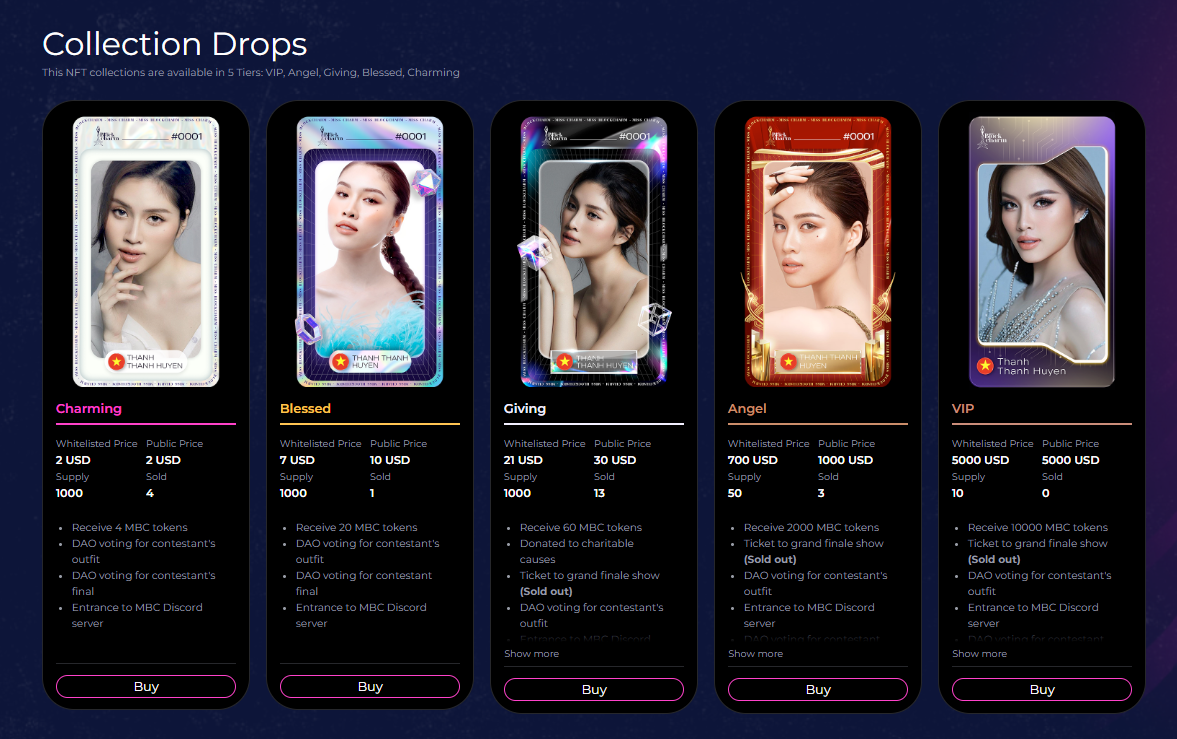 Fizen's integration allowed voters to easily participate in the contest, making the voting process much more straightforward and streamlined. Fizen welcomed thousands of first-time users to learn about web3 in an interesting use case. With Fizen Super App, users can experience receiving MBC voting tokens via airdrop and vote for their favorite contestant as a blockchain transaction. Fans can buy NFT packs with exclusive privileges like more voting tokens, DAO voting for contestant's outfit, entrance to MBC Discord server, DAO voting for contestant in the final, access to Gala dinner and ticket to grand finale show. All NFT are now prized collectibles and can be found on Opensea.