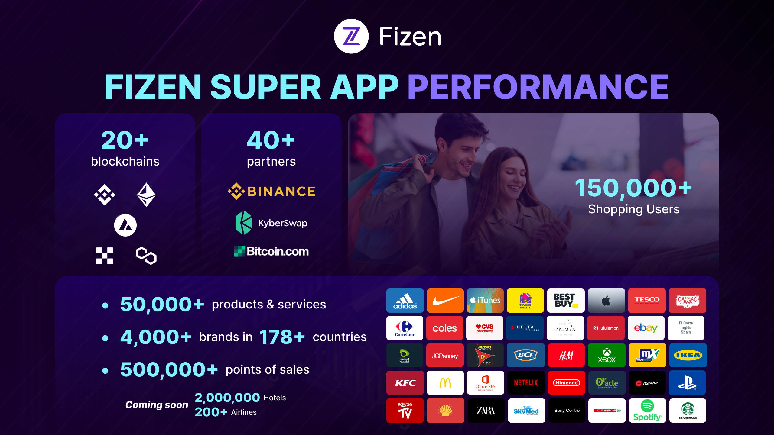 - Shop & Travel Globally: Fizen users can effortlessly spend their cryptocurrencies on over 50,000+ goods and services from 4,000+ brands in 178 countries without the need for traditional currency exchange.