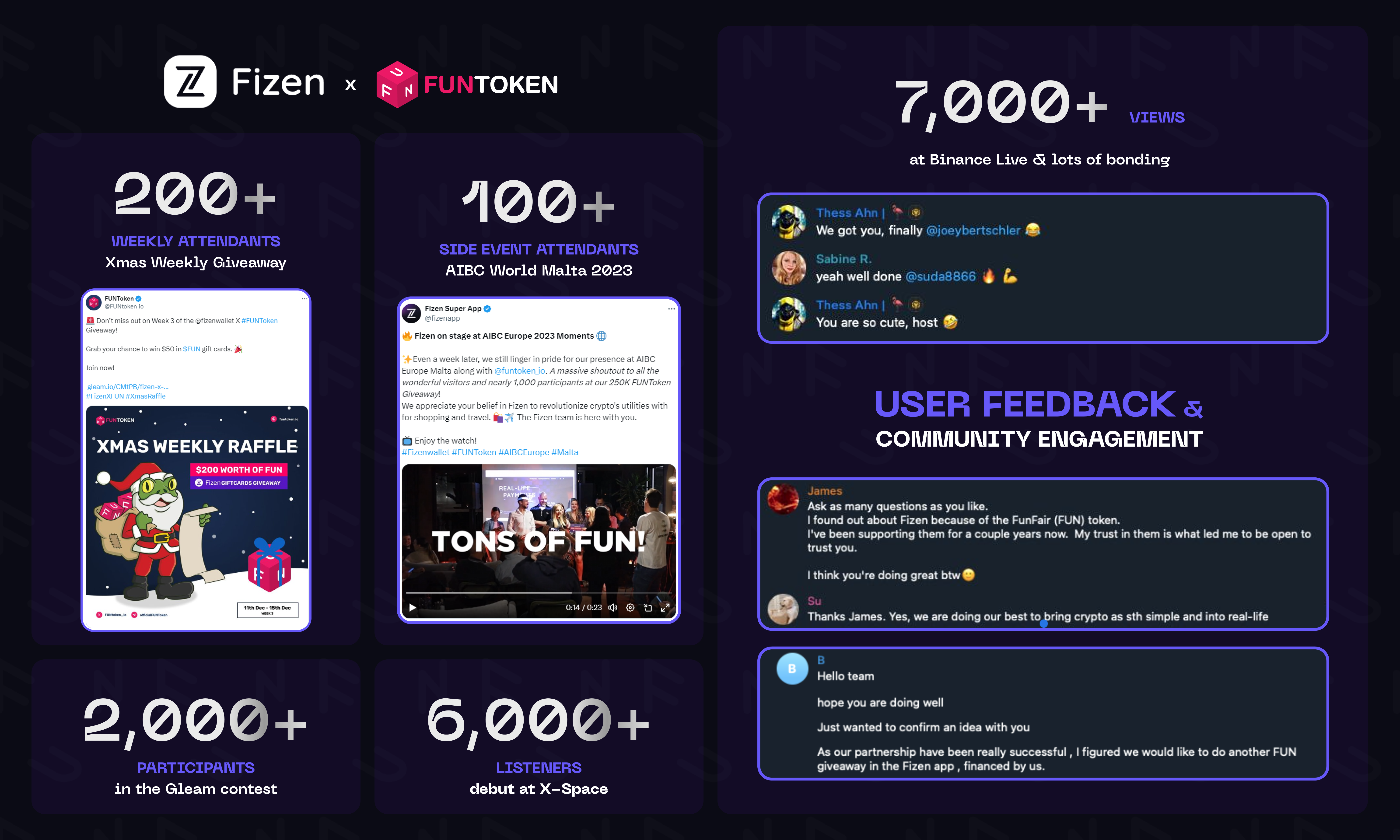 This case study explores the successful integration of over 10 different Crypto Projects' tokens into the Fizen Super App. Highlighting FUNToken and Monsterra as key examples, we examine the impact of these integrations on community feedback, brand awareness, and user growth.
