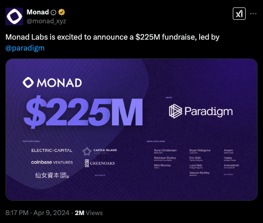 Monad is a Layer 1 blockchain bringing parallel execution to the EVM to make the decentralized future a reality, get funded $228M with the top 1 Crypto VC Paradigm.