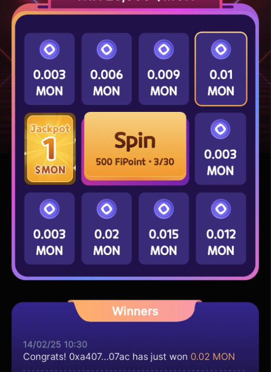 Step 3: Spin with FiPoint & Enjoy MON Rewards