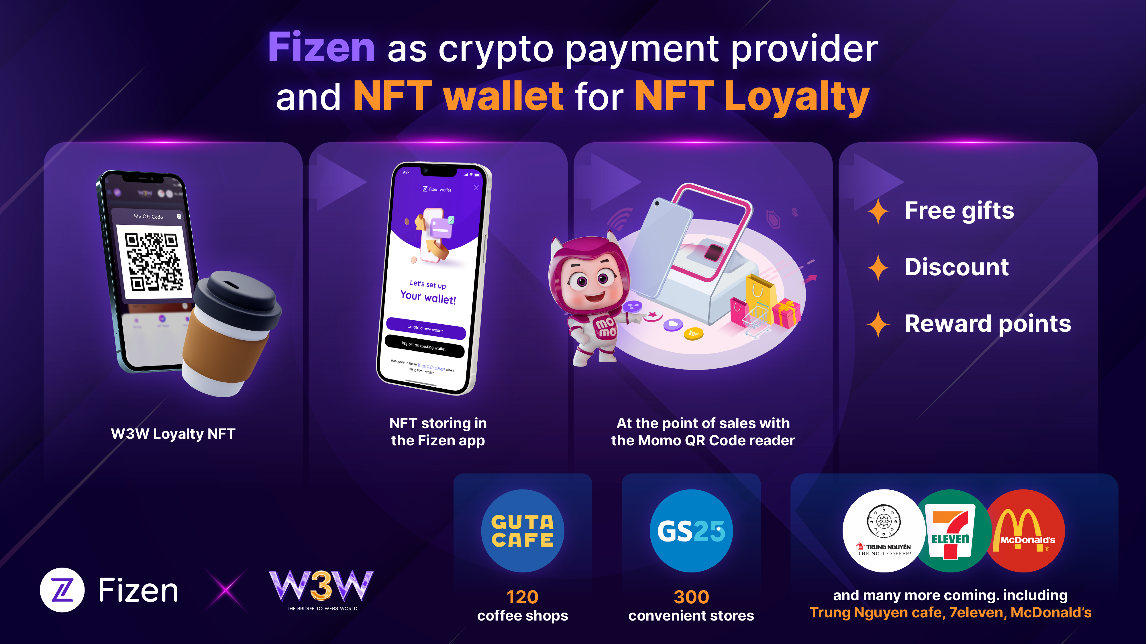 [Coming soon] Fizen is gearing up to integrate W3W Loyalty NFT metadata. The Fizen Super App wallet will serve as a gateway for W3W users to securely store, send, receive, and experience the utilities of their W3W NFTs at partnered coffee shops, convenience stores, and numerous high-profile merchants, both within Vietnam and on global stages.